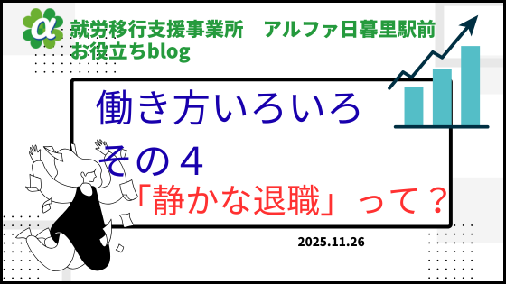 今日は『働き方いろいろ』に戻って、話題のキーワード「静かな退職」についてお話ししてみたいと思います。